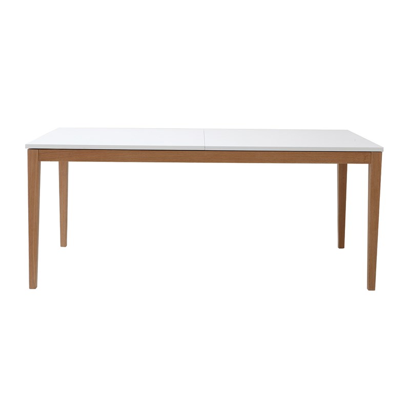 Table à manger extensible blanche pieds bois rectangulaire l180-260 cm delah
