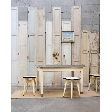 Invitez cette table Mado au plateau plastifié moucheté blanc et vert foncé, piètement laqué blanc et embouts en inox, qui rappelle l'élégance discrète des années 60. Conçue pour recevoir 4 à 6 convives, elle se prolonge facilement grâce à ses deux rallonges et dispose d'un tiroir pratique pour les couverts, alliant fonctionnalité et simplicité. Sa surface résistante et ses proportions équilibrées apportent une ambiance conviviale et vintage, idéale pour une cuisine ou une salle à manger chaleureuse.