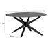 La table à manger DIELLI se démarque aussi par son piètement sculptural en hévéa massif teinté noir qui a l'avantage d'être stable et robuste tout en libérant l'espace sous le plateau.