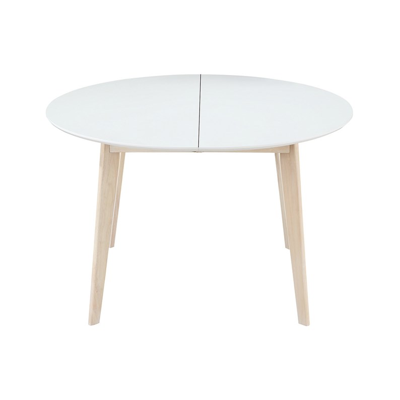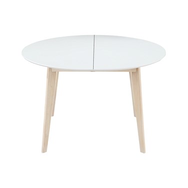 Table à manger ronde extensible blanc et bois l120-150 cm leena