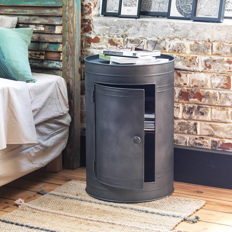 Avis aux amateurs d'originalité , voici une table de chevet grise que vous ne retrouverez pas partout ! Le bidon , intemporel accessoire de décoration, continue de nous surprendre et s'invite dès à présent dans nos chambres à l'aide de ce joli chevet. Son style résolument industriel est à la hauteur de nos espérances grâce à ses détails révélateurs.