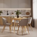 Table et chaises 4 personnes en tissu taupe et bois - réno