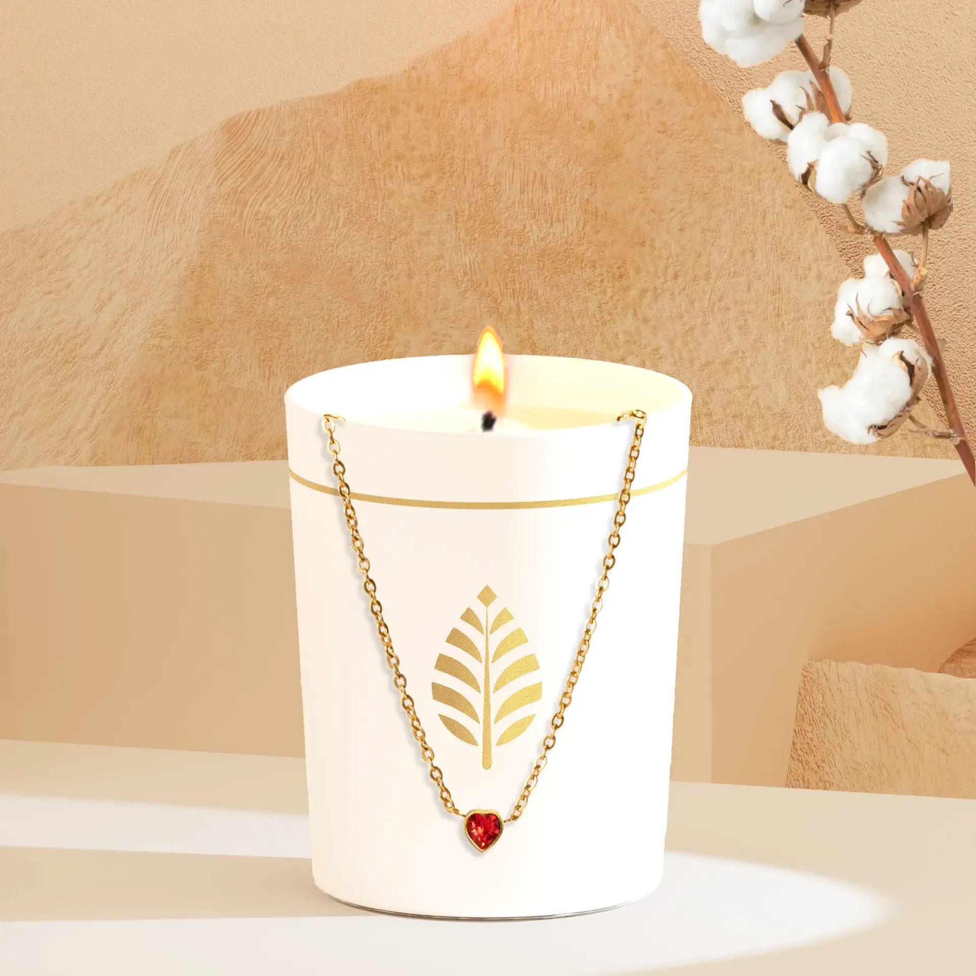- 1 joli Bijou est caché dans la cire : Découvrez après quelques heures de brûle 1 très beau Collier Coeur Rouge Swarovski (dans son emballage protecteur), en acier inoxydable plaqué or 18 carats