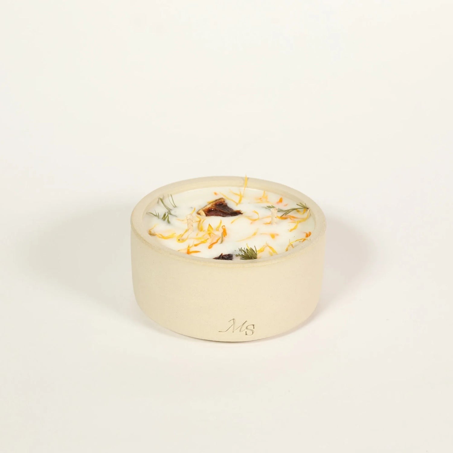 Cire vegetale de soja, parfums de Grasse sans CMR, fleurs sechees du jardin, meche en coton et ame en papier
