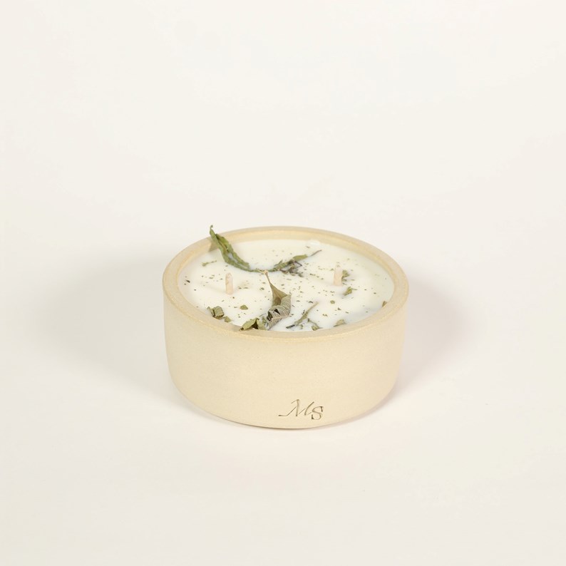 Cire vegetale de soja, parfums de Grasse sans CMR, fleurs sechees du jardin, meche en coton et ame en papier