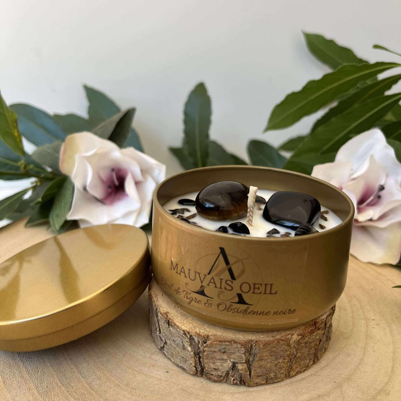 Bougie mauvais œil – œil de tigre & obsidienne noire