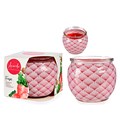 Bougie parfumée dans un pot en verre à l'odeur de fraise.