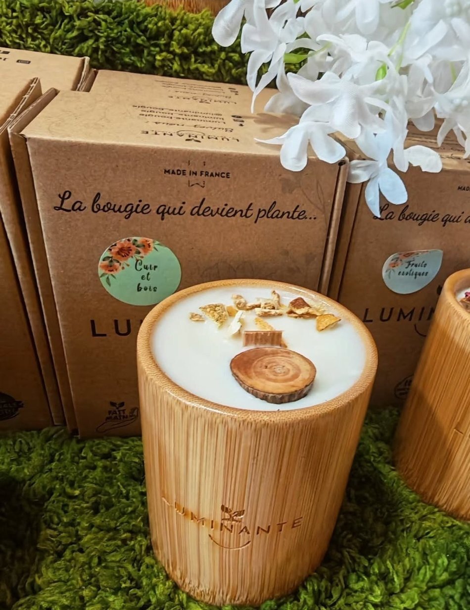 Environ 200g de cire de soja 100% naturelle certifiée Bio-Végan d’origine UE. Senteur de Grasse. Mèche en bois de hêtre non-traité. Décors naturels. Contenants recyclés et recyclables. Photos non-contractuelles car étant artisanales toutes les bougies sont uniques !