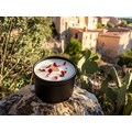 Environ 200g de cire de soja 100% naturelle certifiée Bio-Végan d’origine UE. Senteur de Grasse. Mèche en bois de hêtre non-traité. Décors naturels. Contenants recyclés et recyclables. Photos non-contractuelles car étant artisanales toutes les bougies sont uniques !