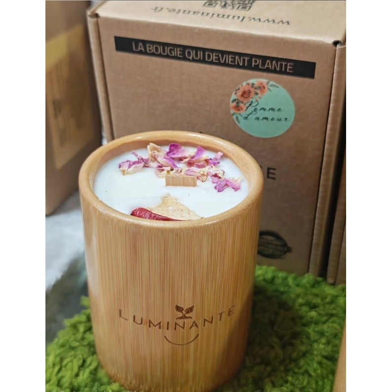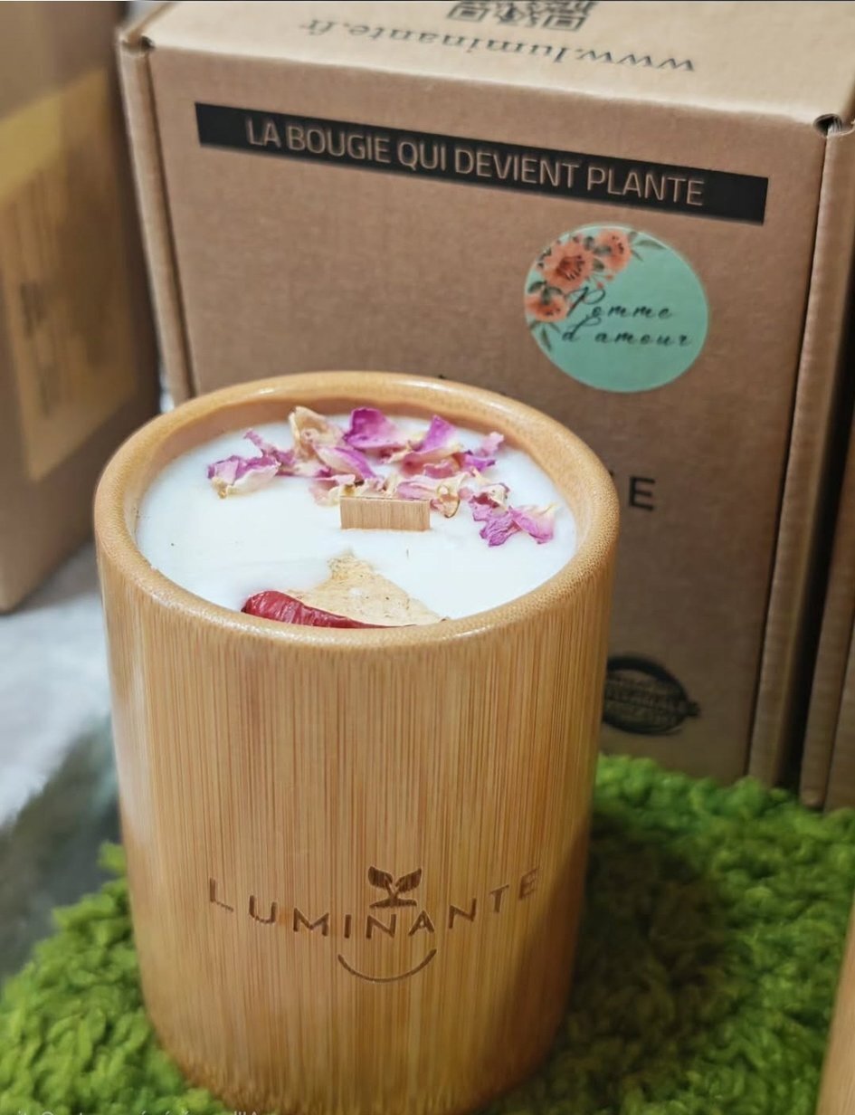 Environ 200g de cire de soja 100% naturelle certifiée Bio-Végan d’origine UE. Senteur de Grasse. Mèche en bois de hêtre non-traité. Décors naturels. Contenants recyclés et recyclables. Photos non-contractuelles car étant artisanales toutes les bougies sont uniques !