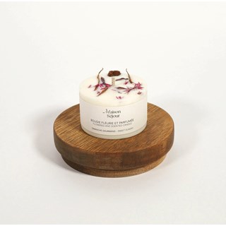 Cire vegetale de soja, parfums de Grasse sans CMR, fleurs sechees du jardin, meche en coton et ame en papier