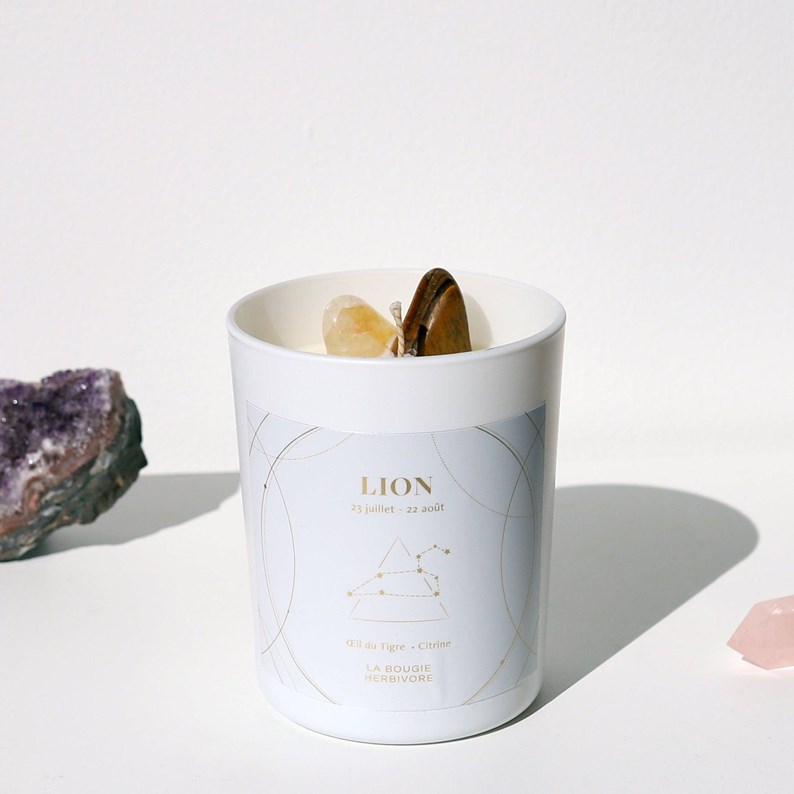 Notre bougie est recommande´e pour vous connecter pleinement avec les valeurs et les particularite´s de votre signe astrologique Lion. En l’utilisant, vous profitez des vertus solaires des pierres de lithothe´rapie pour rendre votre vie plus sereine et chaleureuse au quotidien !