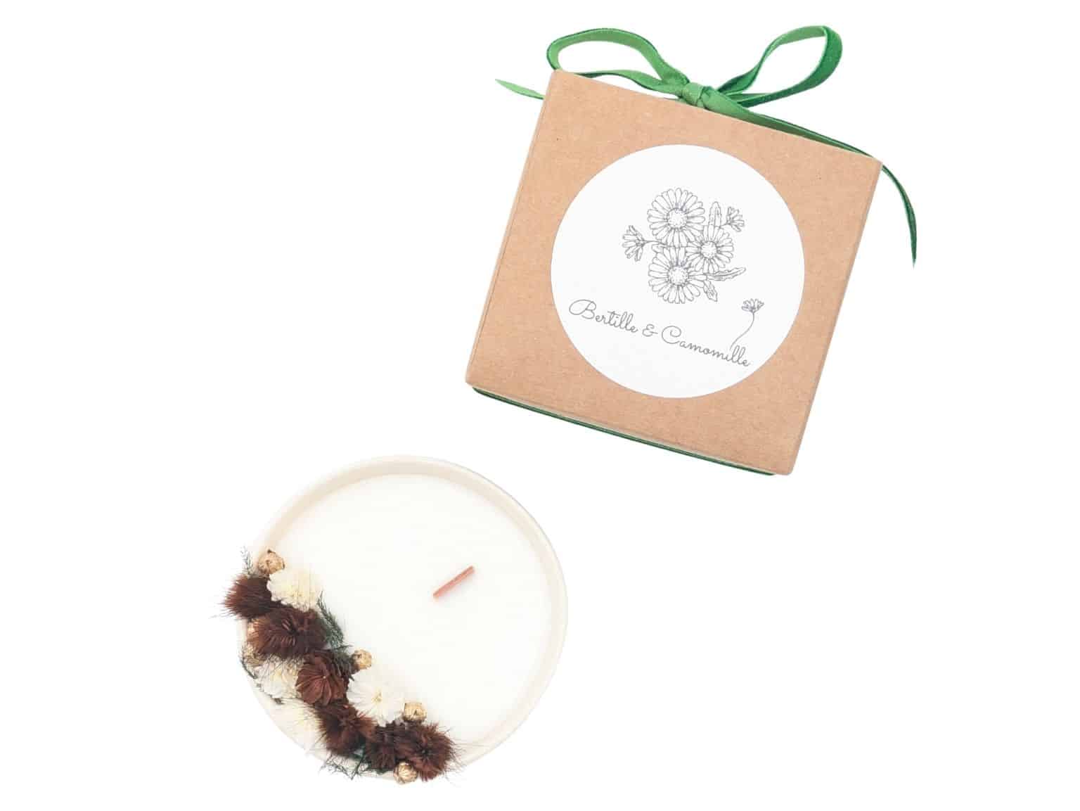 Conseils d’utilisation :Nos bougies sont pensées comme de véritables objets de décoration et de bien-être. Voici quelques gestes simples pour prolonger leur beauté et savourer pleinement chaque instant :Une flamme qui protège vos fleurs :Les mèches sont volontairement décentrées afin de préserver les fleurs séchées et de garder la bougie esthétique jusqu’à la dernière lueur. Toute la cire ne se consumera pas entièrement : c’est un choix assumé, pour que votre bougie reste jolie le plus longtemps possible.Un temps de pause idéal :Pour éviter que les fleurs ne se rapprochent trop de la flamme, laissez brûler votre bougie par sessions d’environ une heure.Un petit rituel d’entretien :Si une fleur venait à se détacher et à flotter dans la cire, éteignez la flamme et, tant que la cire est encore liquide, retirez-la délicatement à l’aide d’une pince à épiler ou d’une petite cuillère. Ce geste préservera la beauté de la cire et la qualité de la combustion.Prendre soin de la mèche :Nos mèches en bois crépitent comme un feu de cheminée. Pour conserver cette jolie flamme et éviter qu’un excès de charbon ne colore trop la cire, coupez délicatement la mèche à environ 5 mm avant chaque nouvelle utilisationUn moment en toute sécurité :Placez toujours la bougie sur une surface plane, loin des courants d’air, et ne la laissez jamais sans surveillance. Tenez-la hors de portée des enfants et des animaux.Ces quelques gestes transforment l’allumage de votre bougie en un doux rituel, pour profiter longtemps de sa lumière et de son parfum