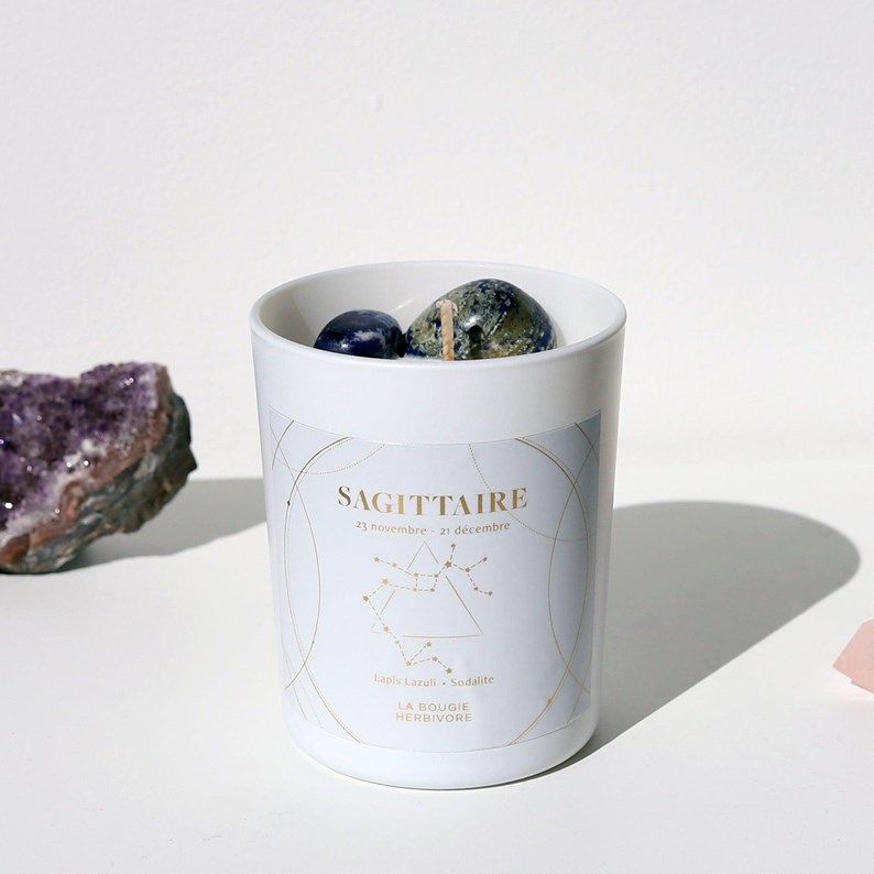 Notre bougie Sagittaire est parfaite pour les personnes ne´es sous ce signe de feu puisqu’elle permet de vous guider au quotidien. Les pierres de lithothe´rapie vous apportent en effet l’e´quilibre, l’harmonie et la joie dans votre vie, au quotidien. Vous pouvez la faire bru^ler de`s que vous en ressentez l’envie pour profiter de ses nombreuses proprie´te´s !