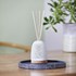 Contient : 1 vase en céramique, 1 socle en bois, 1 réservoir en verre (50 ml) et 6 tiges en rotin.