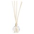 - Son petit vase en verre rempli de parfum accueille des tiges de rotin qui forment un bouquet élégant.