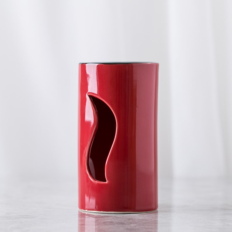 Brûle-parfum rouge en céramique émaillée