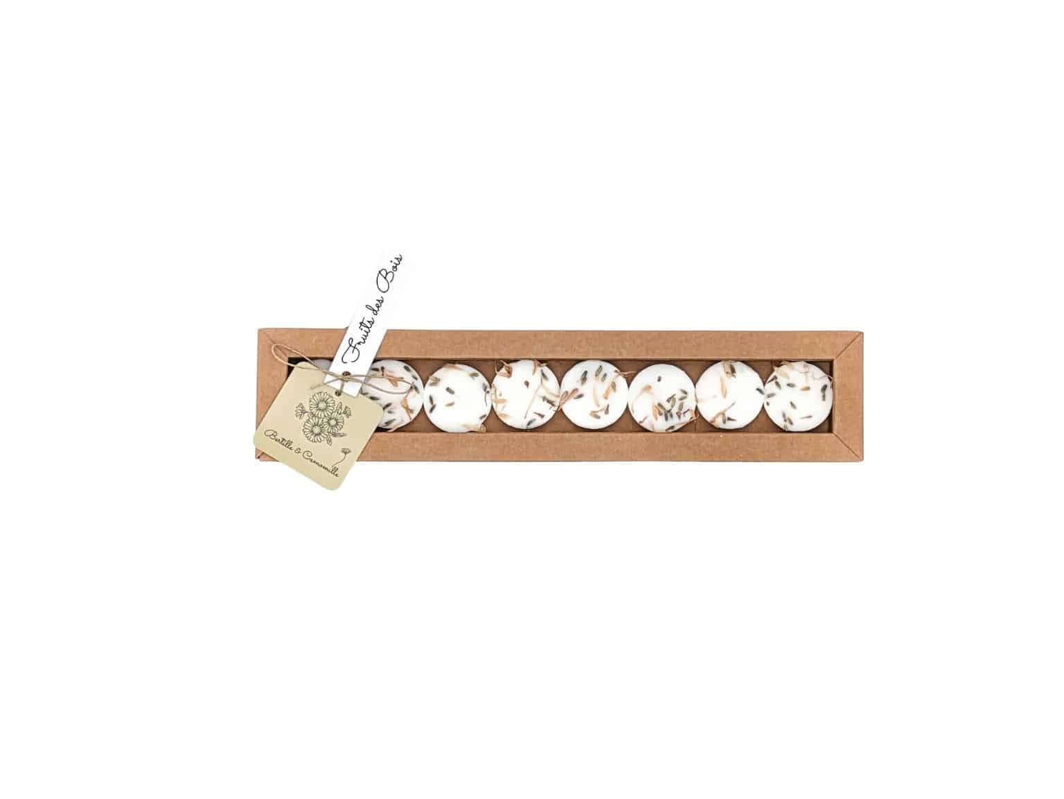 Conseil d’utilisation :Son utilisation nécessite l’emploi d’une bougie chauffe-plat dans le brûle parfum.Placez votre brûleur allumé sur une surface stable.En l’espace de quelques minutes le fondant libérera son parfum.Une fois fondu le fondant est réutilisable.Si vous souhaitez changer de parfum alors que le fondant n’est pas terminé, laissez la cire parfumée se solidifier. Après quelques minutes, vous pouvez alors doucement la retirer avec le dos d’une cuillère pour la réutiliser en la conservant à l’abri de la chaleur, du froid et de l’humidité.Il vous suffit de nettoyer la coupelle de votre brûle parfum à l’aide d’un papier absorbant.Une fois comme neuf, vous pouvez utiliser le brûle parfum avec une nouvelle fragrance.Utilisez les fondants parfumés et bougies parfumées dans un espace suffisamment grand et ventilé.Ne pas mélanger les parfums dans l’emballage.Les fondants parfumés sont conseillés pour les grandes pièces. Pour les plus petites pièces, privilégiez les petites bougies.Sécurité :Ne pas utiliser en extérieurNe pas laisser une bougie ou un brûleur sans surveillance.Faites brûler hors de portée des enfants et animaux.Ne pas laisser à la portée des enfants et ne pas avaler les fondants.Ne pas allumer à proximité d’objets inflammables