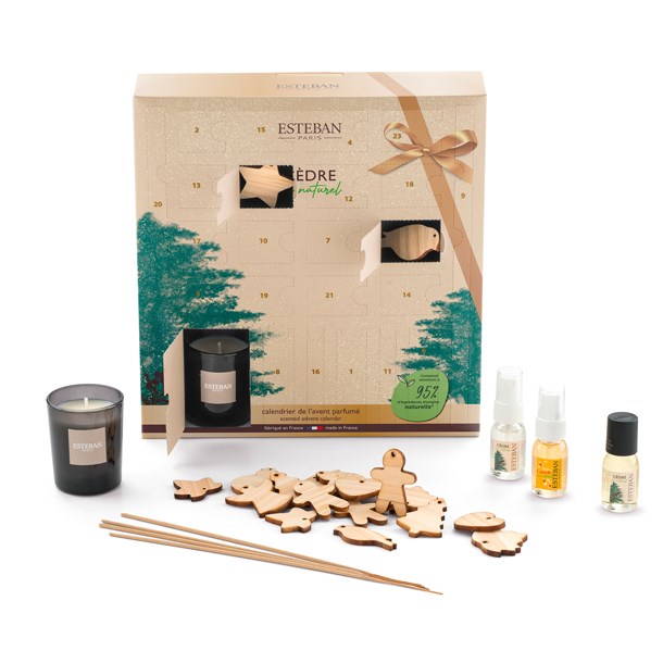 Dans chaque case de ce calendrier de l'Avent, découvrez un objet pour décorer et parfumer votre intérieur grâce aux notes subtiles de deux parfums naturels délicatement boisés : Cèdre et Bois & Cannelle.