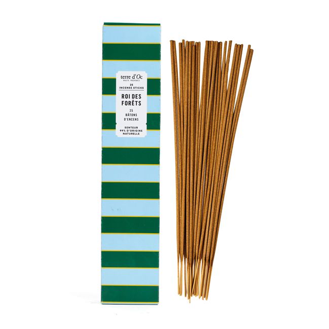 - Il suffit de faire brûler un bâton d'encens pour profiter rapidement de ce parfum boisé, festif, convivial et sain. L’essence Roi des forêts emplit la maison d'une note chaleureuse et naturelle.