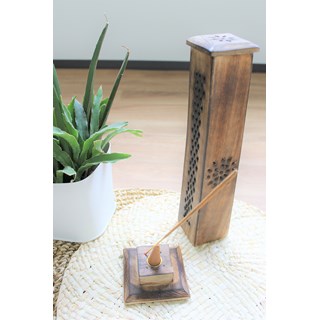 Boîte porte-encens pour bâton en bois de manguier en forme de tour Omsaé