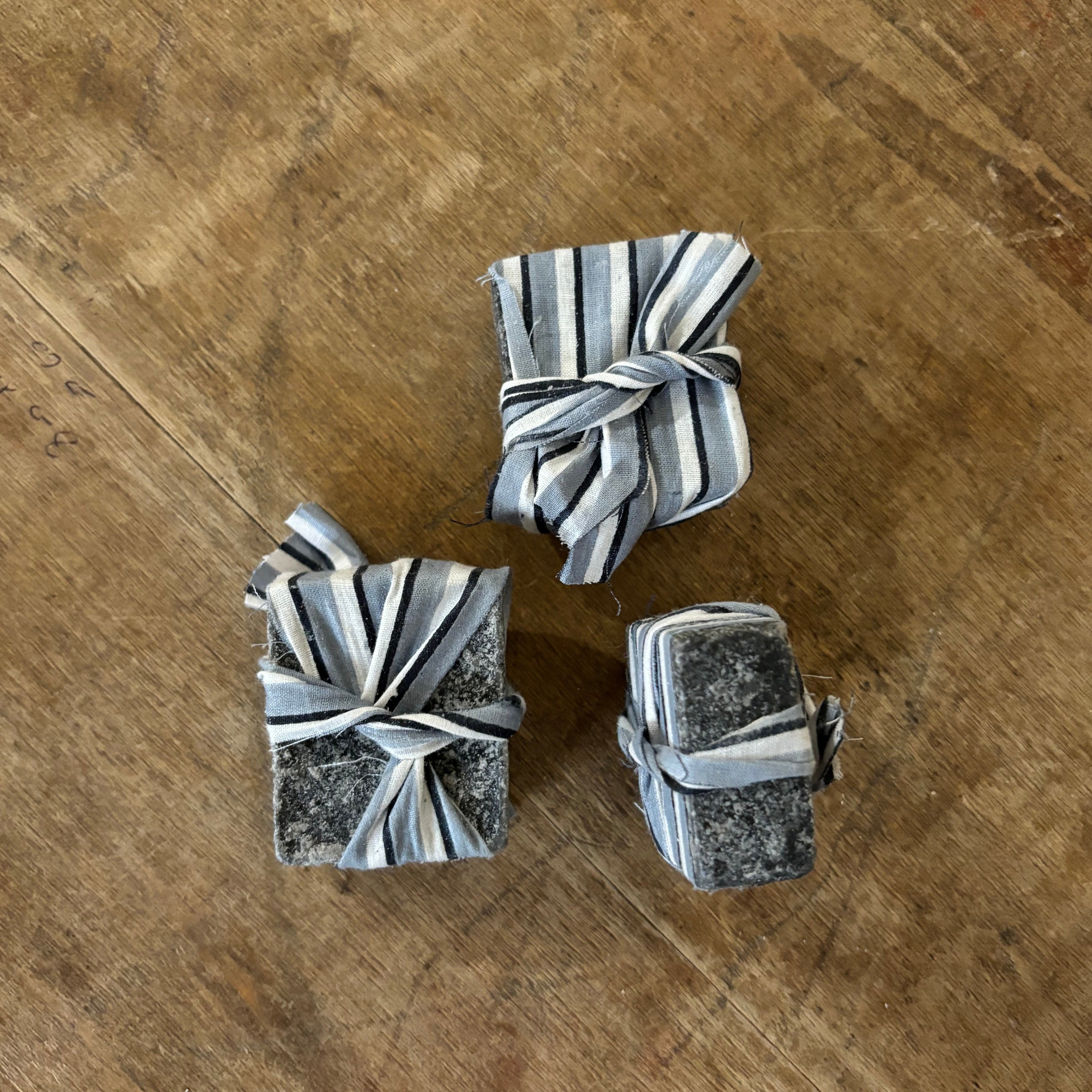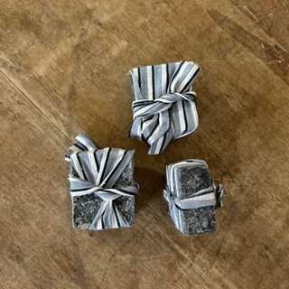 Vous les recevrez délicatement emballés dans des chutes de tissus (lin, coton ou autre).
