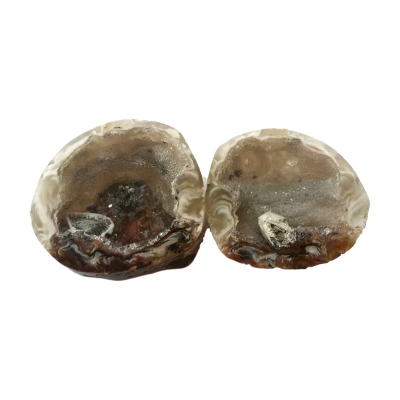 Dimension 9 cm x 6 cm. Poids 320 gr environ.L'agate est une pierre d'ancrage et de chance. Elle donne courage pour affronter les situations difficiles, apporte l'équilibre émotionnel et physique en éliminant les blocages du corps. L'agate rééquilibre et stabilise l'aura. C'est une pierre calmante et apaisante qui favorise la clairvoyance.L'agate se nettoie dans l'eau ou à la lumière lunaire. L'agate se recharge à la lumière du soleil à l'aide d'une géode calcite.
