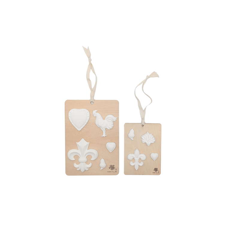 Réalisées en bois naturel et ornées de plâtre décoratif finement moulé, les deux plaques de ce duo révèlent des motifs délicats, travaillés avec soin pour créer un relief élégant et subtil.