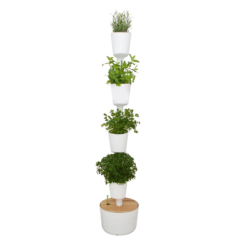 Jardinière verticale blanche à 4 pots, arrosage automatique et graines incluses