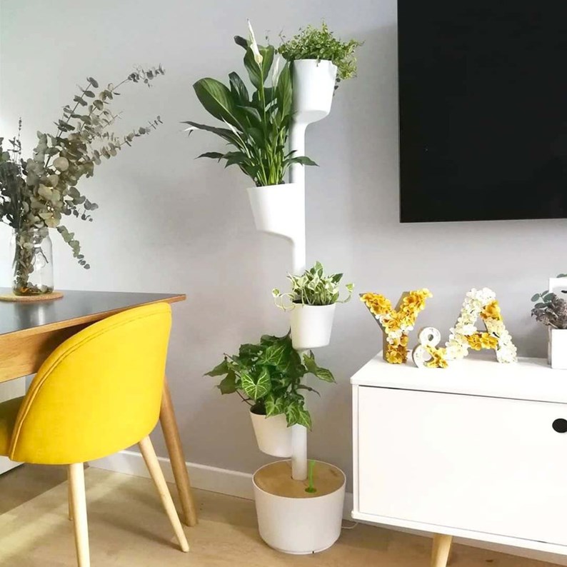 Jardinière verticale smart, 4 pots blanc