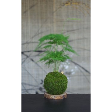 Ce Kokedama abrite un asparagus setaceus originaire d'Afrique.
