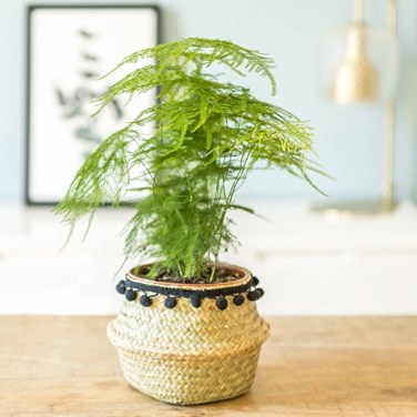 Nos conseils d'entretien : L'aspargus plumosus n'est pas frileux, vous pouvez le placer dans une pièce fraîche mais veillez tout de même à ce que la température ne descende pas sous les 10°C. Il aime les endroits lumineux sans soleil direct et supportera également d'être placé à la mi-ombre. Si ses feuilles jaunissent c'est sans doute que votre aspargus manque de lumière. L'été vous pourrez le sortir : installez-le à l'ombre et à l'abri du vent qui pourrait endommagé ses tiges fragiles.