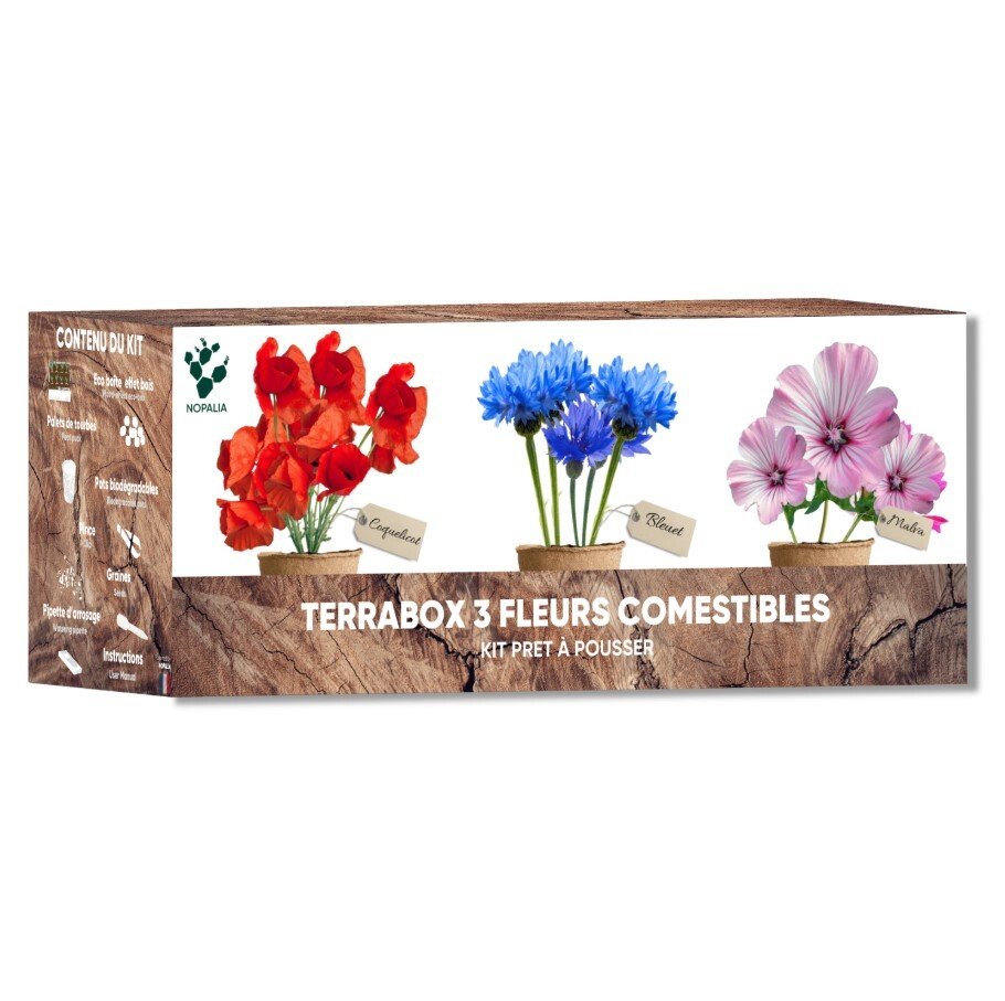 Faites pousser 3 variétés de fleurs bio : coquelicot, mauve et bleuet. Idéal pour décorer vos plats, embellir votre cuisine ou créer un jardin fleuri, en intérieur comme en extérieur.