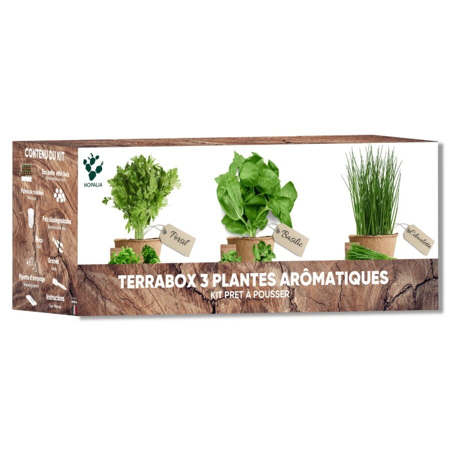 Nopalia® kit herbes aromatiques: basilic, persil, ciboulette, coriandre, romarin