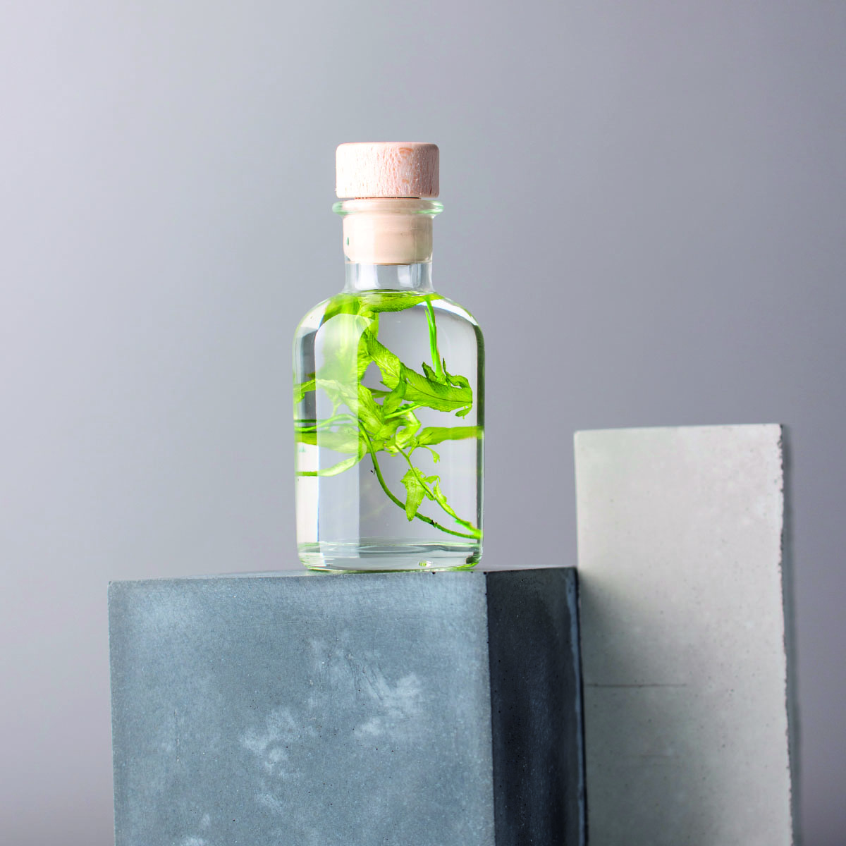 Plongée, comme en apesanteur dans son liquide de préservation et présentée dans un flacon élégant, elle invite à la contemplation et au lâcher-prise, pour vous procurer sérénité et apaisement.