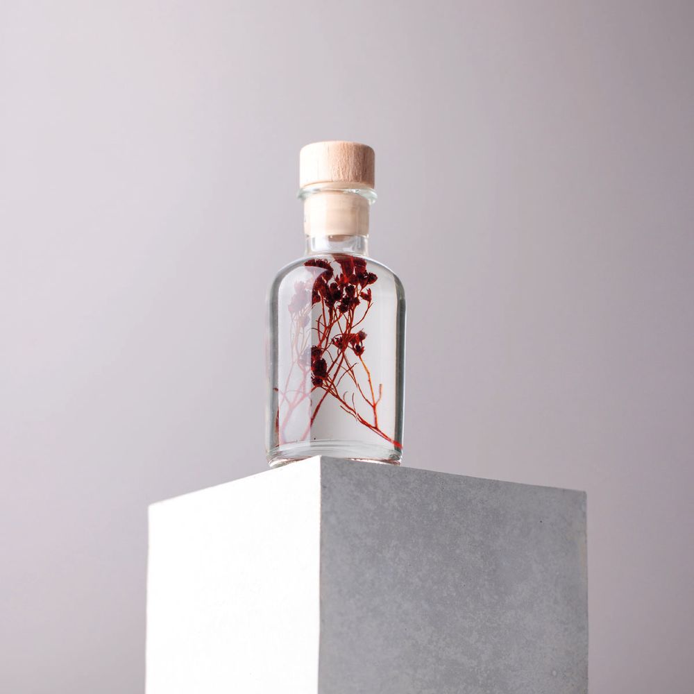 Plongé, comme en apesanteur dans son liquide de préservation et présenté dans un flacon élégant, ce végétal invite à la contemplation et au lâcher-prise, pour vous procurer sérénité et apaisement.