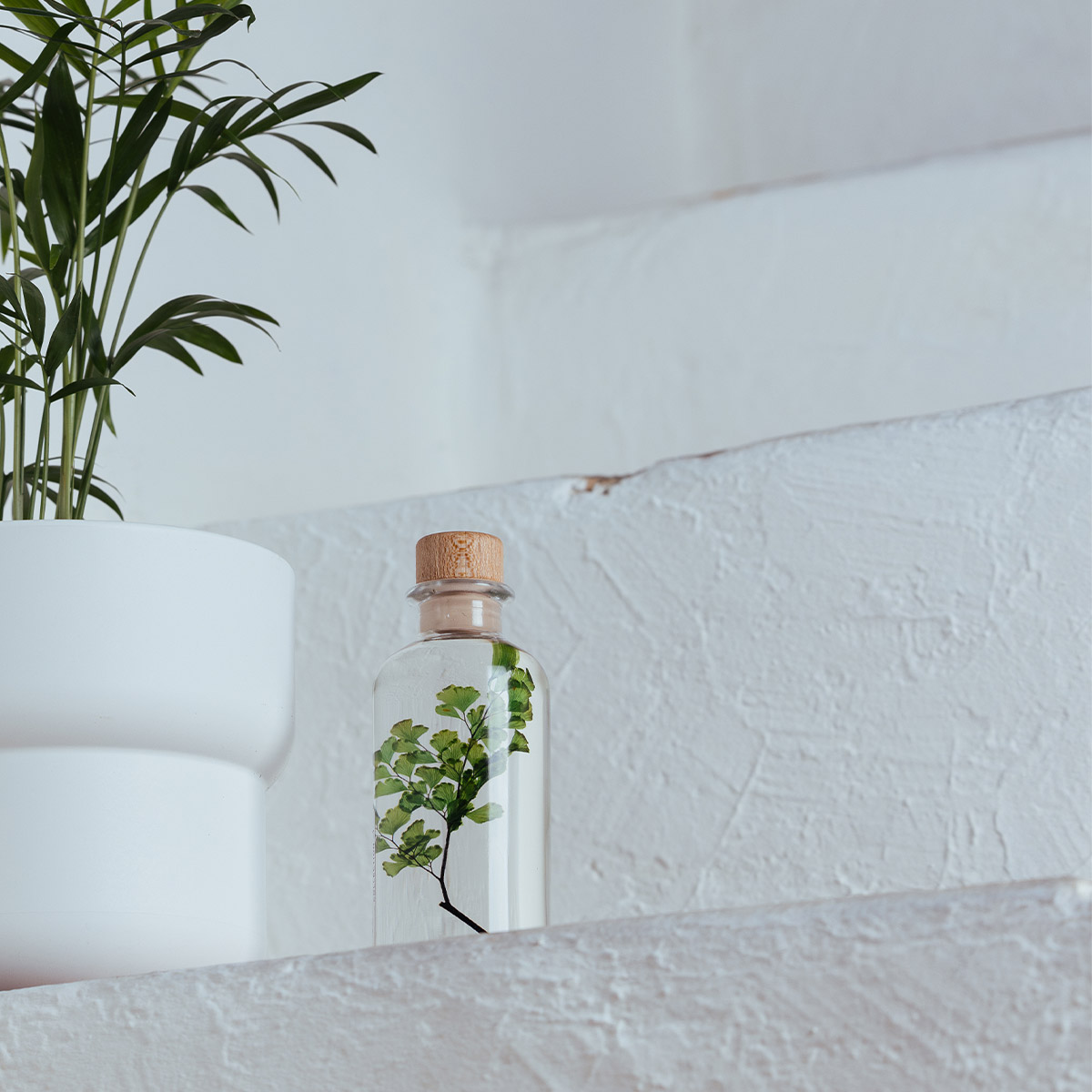 Plongé, comme en apesanteur dans son liquide de préservation et présenté dans un flacon élégant, ce végétal invite à la contemplation et au lâcher-prise, pour vous procurer sérénité et apaisement.