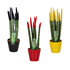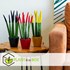 La Sansevieria 'Velvet Touchz' est une plante robuste et très décorative qui demande peu d’entretien. Naturellement verte, ses pointes sont colorées avec une peinture à la texture douce comme du feutre ! Le pot décoratif assorti est inclus. La couleur finira par disparaître, mais cela prendra plusieurs années. La Sansevieria est originaire d’Afrique de l’Ouest et appartient à la famille des succulentes. Grâce à ses propriétés purifiantes, elle augmente le niveau d’oxygène dans la maison. Idéale sur un rebord de fenêtre ou une étagère.