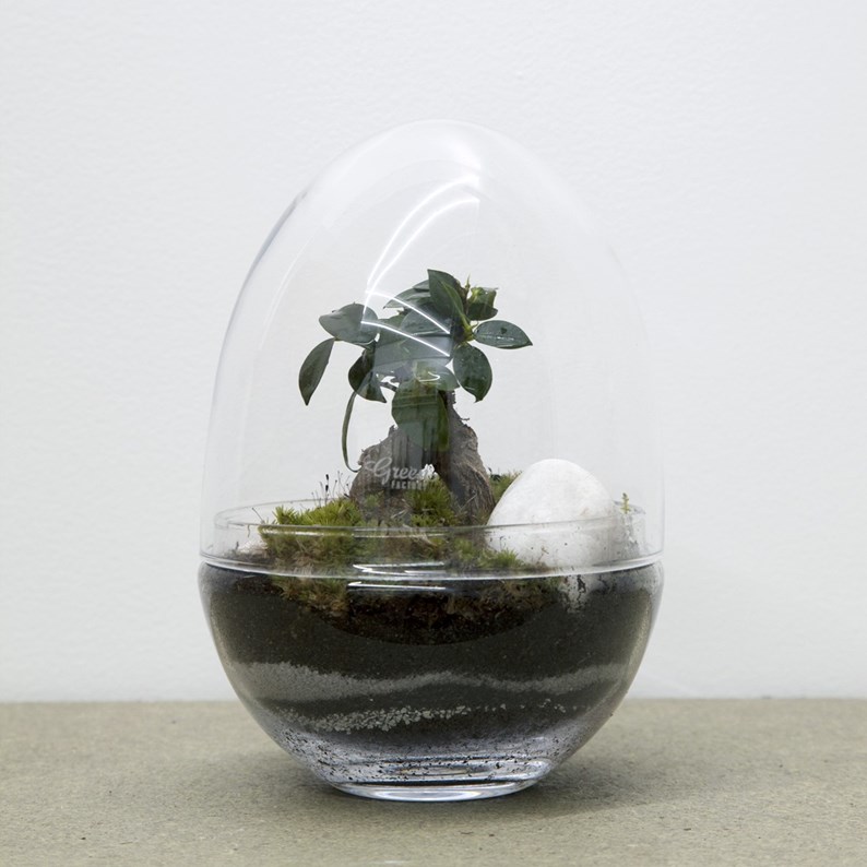 Il est composé d'un bocal en verre, d'une plante (Ficus ginseng), de mousses, graviers et terreau.