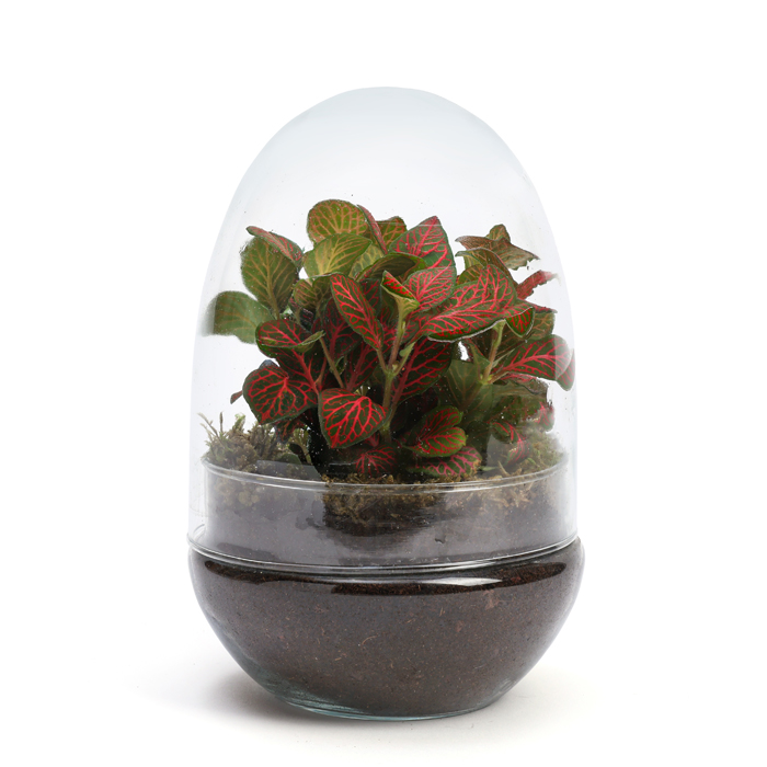 - Admirez le fittonia, bien installé dans cette bulle de verre qui garantit sa bonne santé.