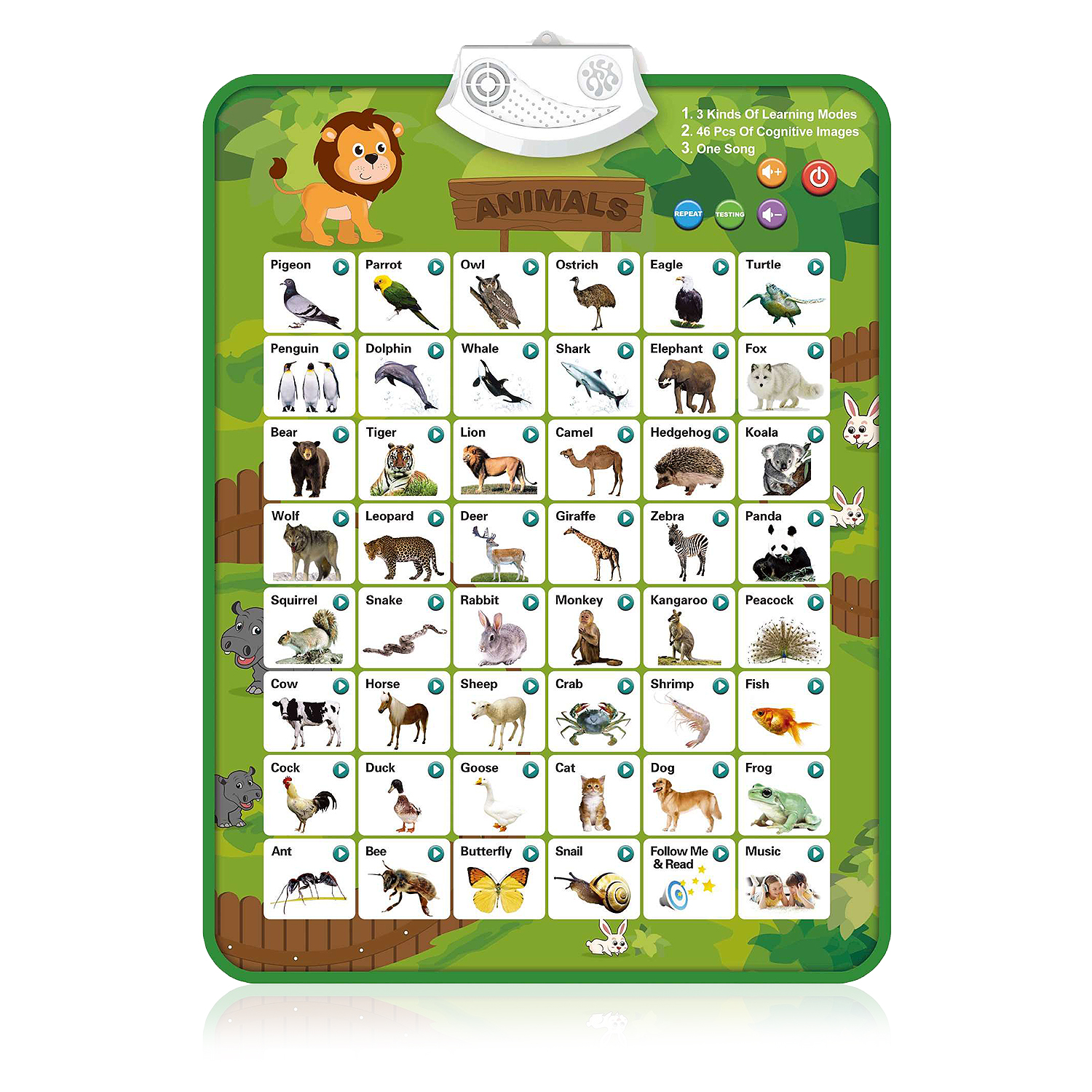 Abécédaire électronique interactif avec des animaux pour apprendre l'anglais.