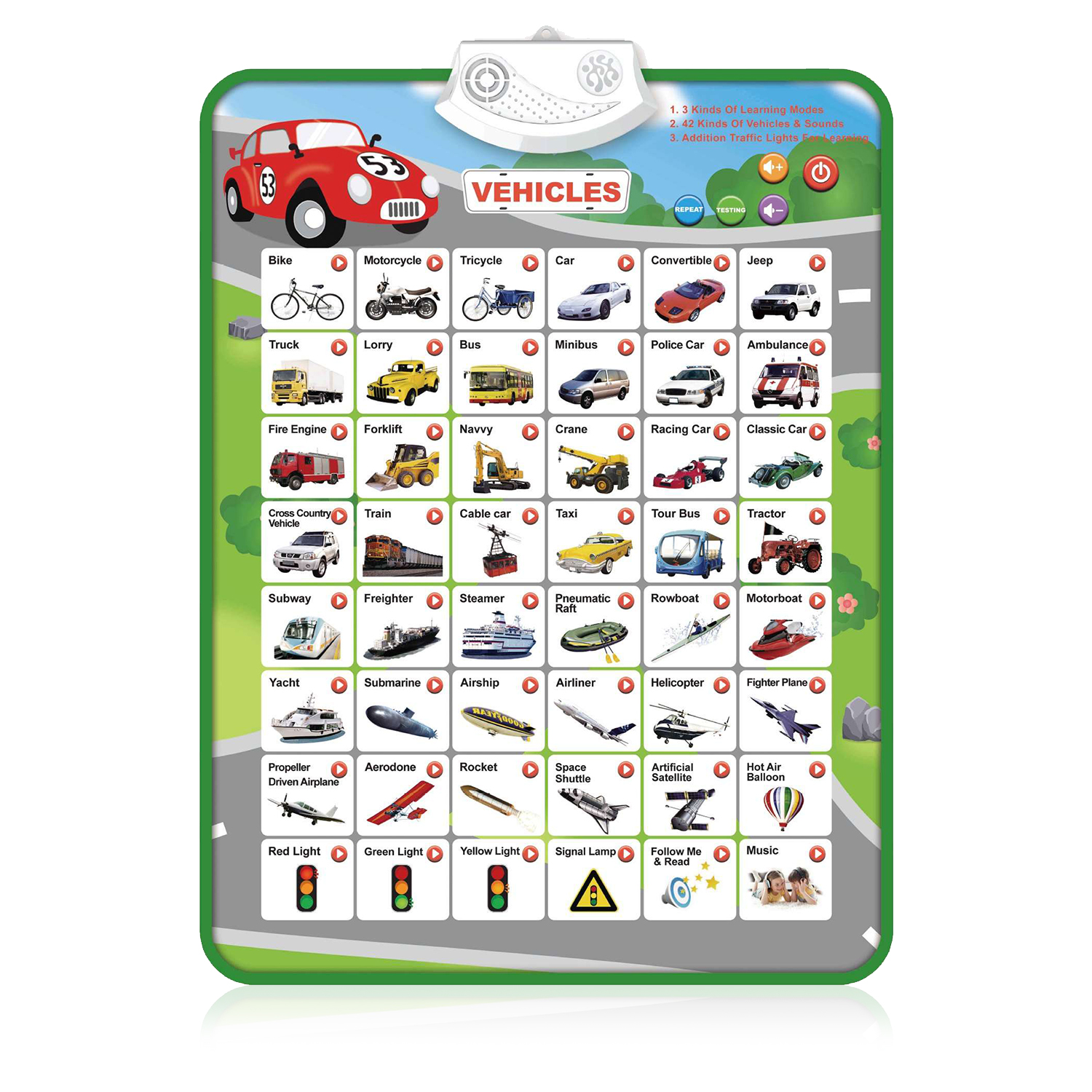 Abécédaire électronique interactif avec véhicules pour apprendre l'anglais.