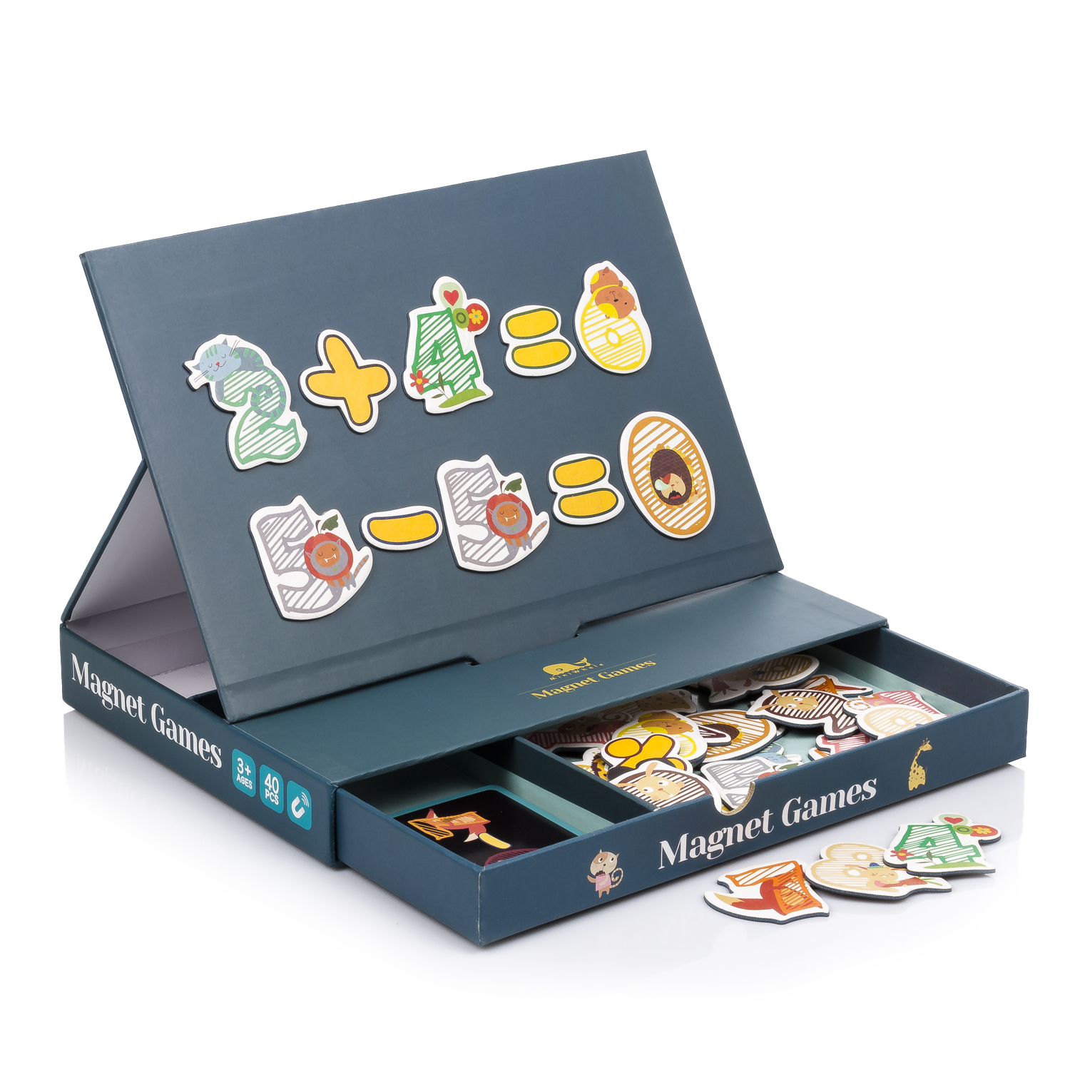 Jeu magnétique mathématique. 40 pièces en carton magnétiques avec des chiffres.