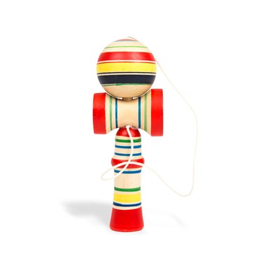 C’est en 1920 qu’un habitant de la région d’Hiroshima eut l’idée de transformer notre célèbre bilboquet en y ajoutant deux coupelles : ainsi est né le kendama constitué d’un manche en forme de marteau (« ken » en japonais) et d’une balle (« tama) reliés par une ficelle.