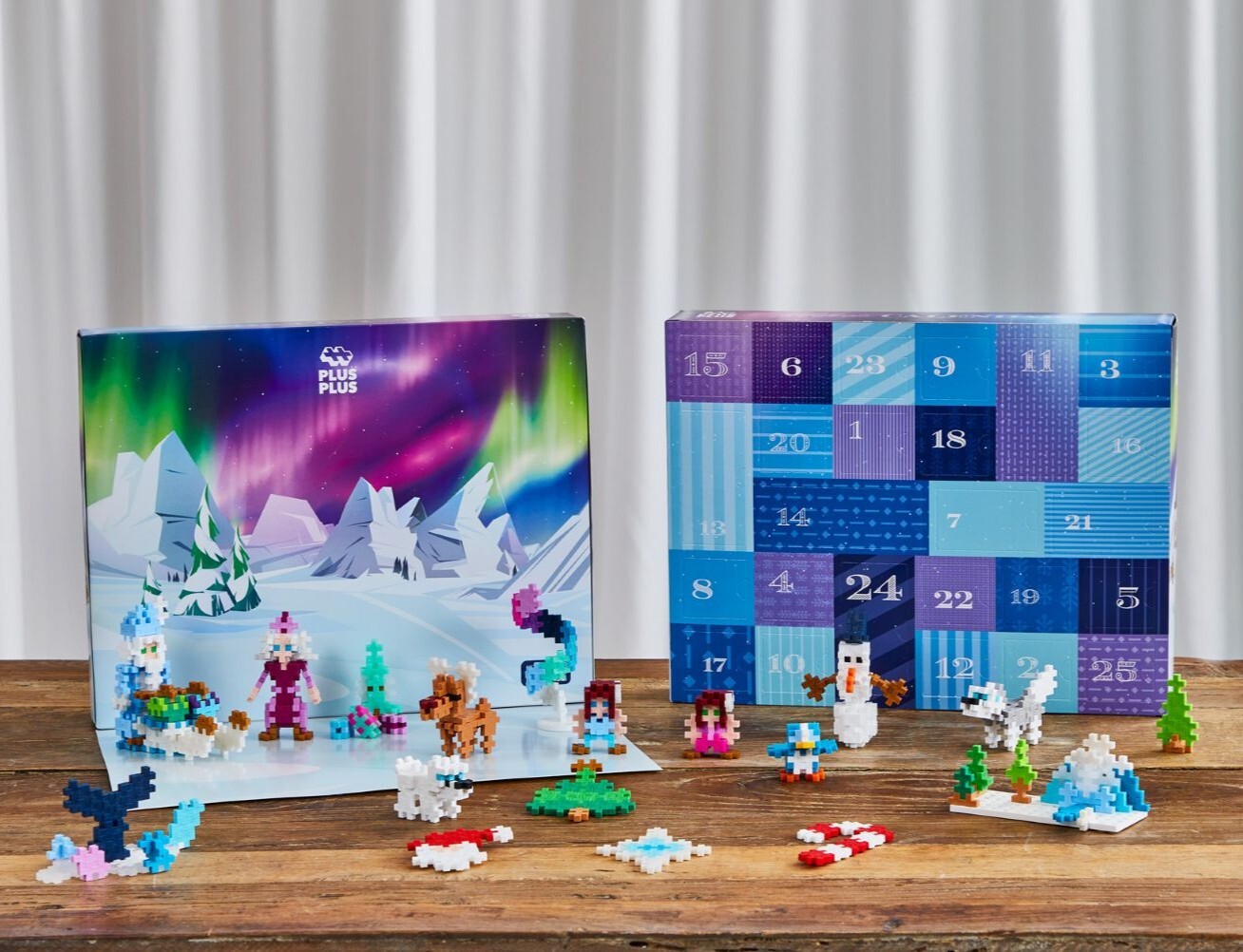 Le calendrier contient environ 600 pièces Plus-Plus, 1 petite plaque de base et 5 roues.