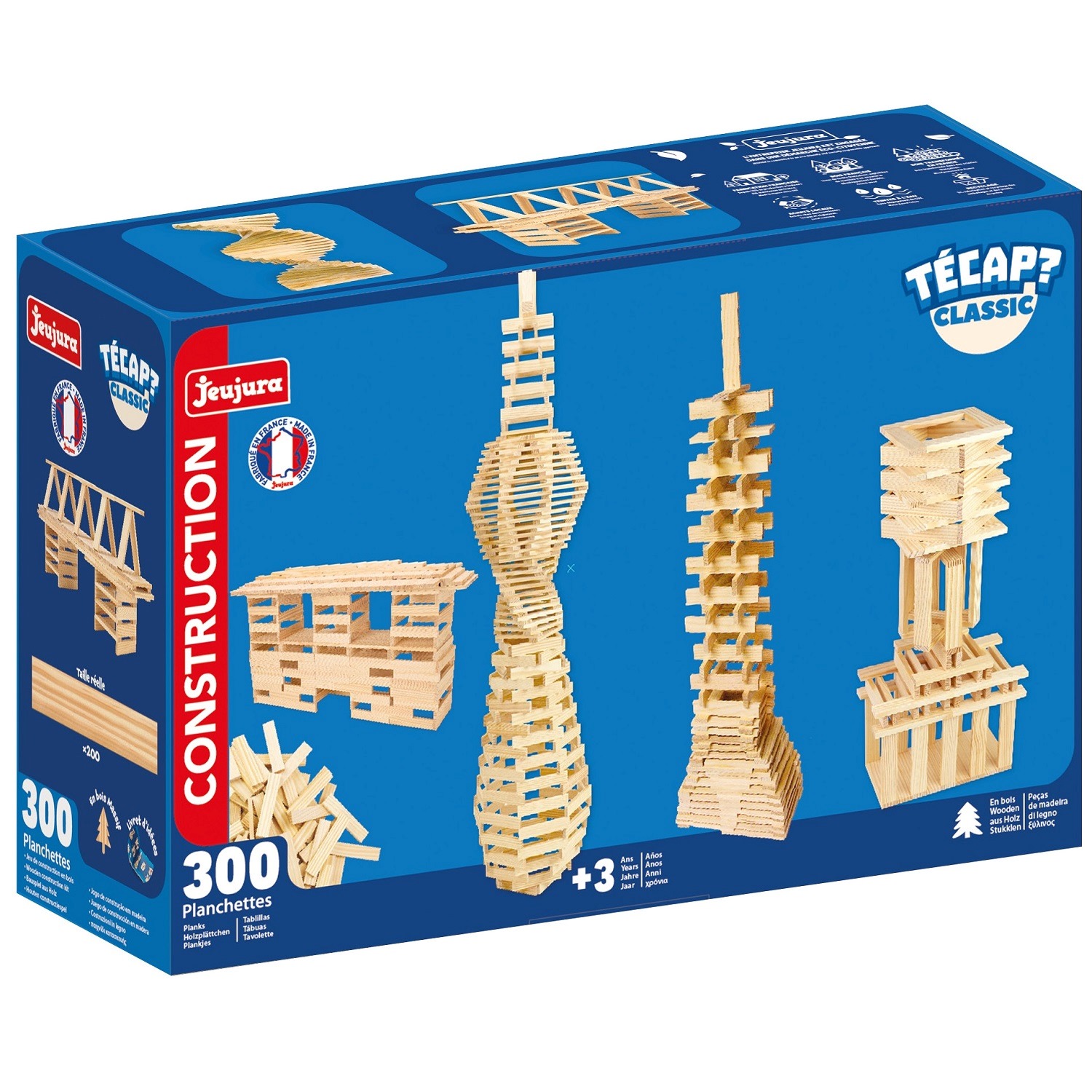 Tecap Classic 300 pièces, planchettes en bois de construction de la marque Jeujura.Cet article ne convient pas aux enfants de moins de 3 ans.Age minimum recommandé : 3 ansAge maximum recommandé : 12 ans