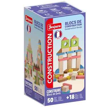 50 blocs de construction en bois de la marque Jeujura. A partir de 18 mois.