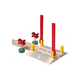 Abaisse les barrières, le train arrive !. Ensemble comprenant 1 passage à niveau de 108 mm, 1 rail A1 de 108 mm et 2 signaux d'avertissement.