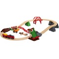 Le circuit de la ferme et locomotive à pile 33984 incluant 30 pièces de jeu est prêt à vous faire découvrir les trésors de la nature dans un cadre paisible. La locomotive de marchandises à pile est en route et prête à collecter et livrer la nourriture aux joyeux animaux. Utilisez la station de chargement de foin incluse dans ce circuit pour récupérer le foin et le déposer dans le wagon de marchandises situé au-dessous. Ensuite, parcourez la campagne vallonnée jusqu'au tracteur qui vous attend pour distribuer la nourriture aux animaux dans les pâturages.