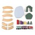 - On installe facilement les 8 rails pour former le circuit du train. Et les éléments de paysage viennent compléter le terrain de jeu : des sapins, un tunnel, des maisons... qui défilent à mesure que la locomotive et ses wagons roulent.